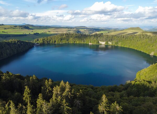 Miroir d’eau volcanique aux reflets profonds, le lac invite à la balade ou au pédalo au cœur d’un écrin sauvage.